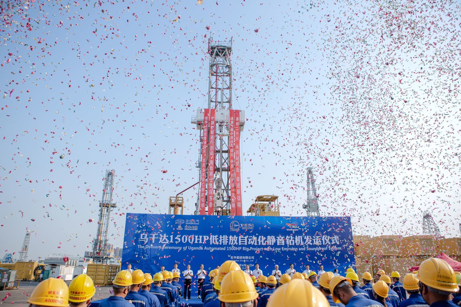 “挺进乌干达!”8月22日,AG尊龙凯时宏华为钻机启程举办了盛大的发运仪式。宏华人为之自豪,为了这一天,宏华团队已经鏖战了三年。